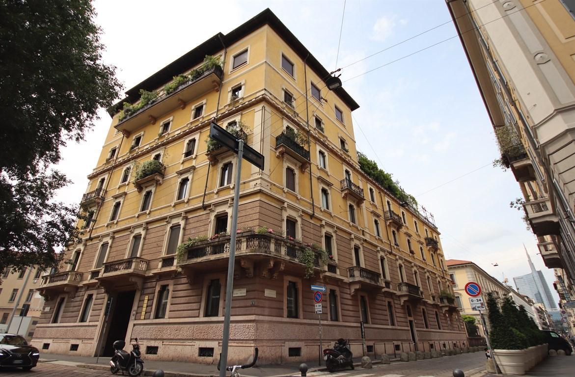 MILANO BRERA - In una delle zona più ricercate di Milano, a pochi passi dalla metropolitana MM2 fermata Moscova, proponiamo in locazione splendido attico con vista sulla skyline di Milano. Posto al quinto ed ultimo piano di un prestigioso palazzo d´epoca con finiture artistiche, con servizio di portierato. Ampio ingresso, salone luminosissimo con terrazzino affacciato su Largo Treves, cucina completamente arredata, camera matrimoniale con bagno padronale, due camere da letto con un ulteriore bagno. Riscaldamento centralizzato e climatizzato. Le spese condominiali mensili ammontano indicativamente a 260 euro. C.E. D- IPE 142,71 kWh/m2a
