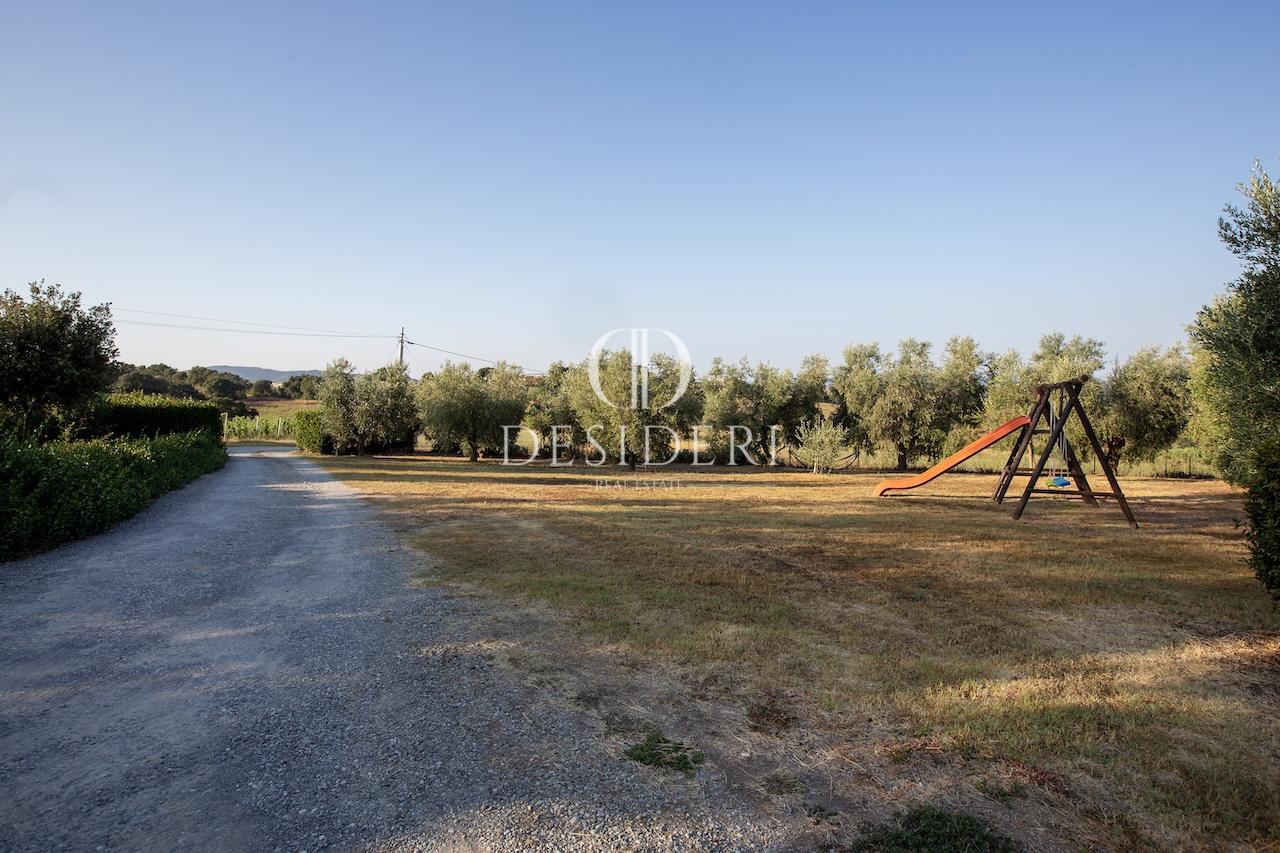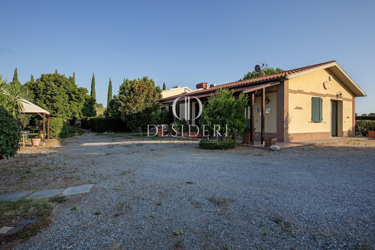 D/CD3704 - Nelle colline maremmane, posto in posizione incredibilmente panoramica proponiamo casale con struttura ricettiva. La proprietà è composta da 5 fabbricati tutti sapientemente ristrutturati preservando le caratteristiche tipiche dello stile toscano con arredi di lusso e finiture di alto livello. Il casale principale di 168 mq. disposto su due livelli, dove al piano terra troviamo la zona giorno composta da un ampio soggiorno, spaziosa cucina attrezzata e due bagni di servizio, al livello superiore due camere matrimoniali e un bagno.
