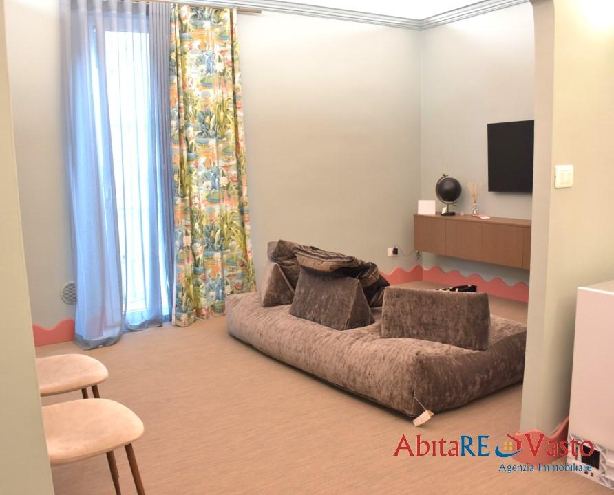 Vasto - Via Canaccio. In pieno centro, a pochi passi da Piazza Rossetti, proponiamo in locazione transitoria un appartamento di recente ristrutturazione integrale, arredato con mobili nuovi e curato nei dettagli, disposto su due livelli con ingresso indipendente al piano terra. Al 1° piano si sviluppa la luminosa zona giorno con cucina a vista, separata dal soggiorno da una parete parziale, e un comodo balconcino. Una scala interna, ben illuminata, conduce al piano superiore dove troviamo una spaziosa camera matrimoniale con bagno en-suite, un pratico ripostiglio e un secondo balconcino.\nL´immobile, rifinito con materiali di qualità e dotato di riscaldamento autonomo ad aria con climatizzatori caldo / freddo, favorite dalla presenza di pannelli fotovoltaici sul tetto e batterie di accumulo, oltre ogni comfort moderno, rappresenta la soluzione ideale per una coppia (max). Non è adatto a famiglie con bambini e non sono ammessi animali.\nDisponibile da subito, con contratto transitorio fino al 30 maggio 2026. Si valutano, a determinate condizioni, anche locazioni annuali.\nRichiesti esclusivamente conduttori referenziati con redditi dimostrabili. - Maggiori Dettagli: Climatizzato, Ripostiglio, Rete ADSL