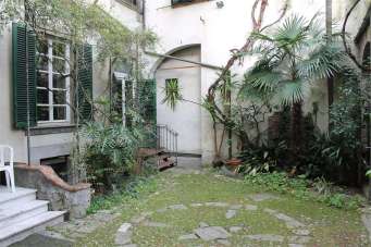 L´appartamento è composto da: ingresso fronte piazza con accesso dal giardino esclusivo e da un grande cancello in ferro da poter utilizzare o come giardino o come parcheggio interno, , l´appartamento si compone da ingresso, due ampie sale comunicanti, una sala con caminetto in marmo, due locali con accesso laterale, tre bagni, tre canne fumarie, soffitti a cassettoni in legno completamente restaurati, pavimenti Tessieri, pareti elegantemente affrescate.