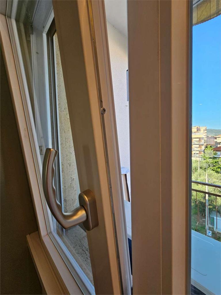 L´unità immobiliare oggetto di compravendita è sita al piano quarto ed ultimo con ascensore e la disposizione interna è la seguente: ingresso, disimpegno, soggiorno con cucina a vista e balcone dotato di vista aperta e scorcio di mare laterale, camera matrimoniale, cameretta e bagno finestrato.