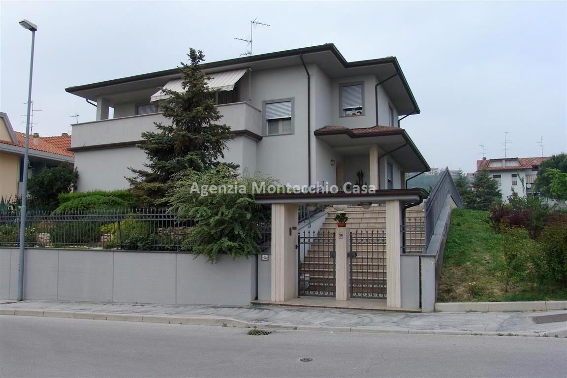 Rif. 1402 - MONTECCHIO (PU) – In zona centralissima e residenziale di Montecchio, in posizione privilegiata adiacente a un grazioso parco pubblico, proponiamo in vendita esclusiva una splendida villa indipendente, recentemente costruita e rifinita con grande cura nei dettagli.